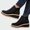 Ženske **kožne čizme s platformom** u crnoj boji koje kombiniraju eleganciju i udobnost. Njihov minimalistički dizajn s **bočnim patentnim zatvaračem** osigurava lako obuvanje, dok **stabilna wedge potplat** daje visinu bez umaranja. Idealne za svakodnevne i večernje izlaske s modernim urbanim karakterom.
