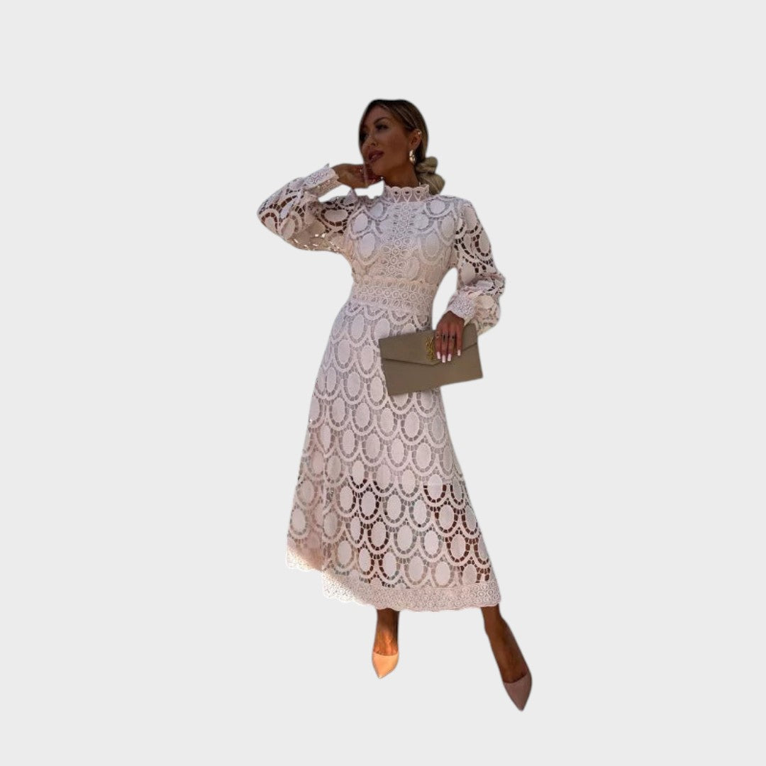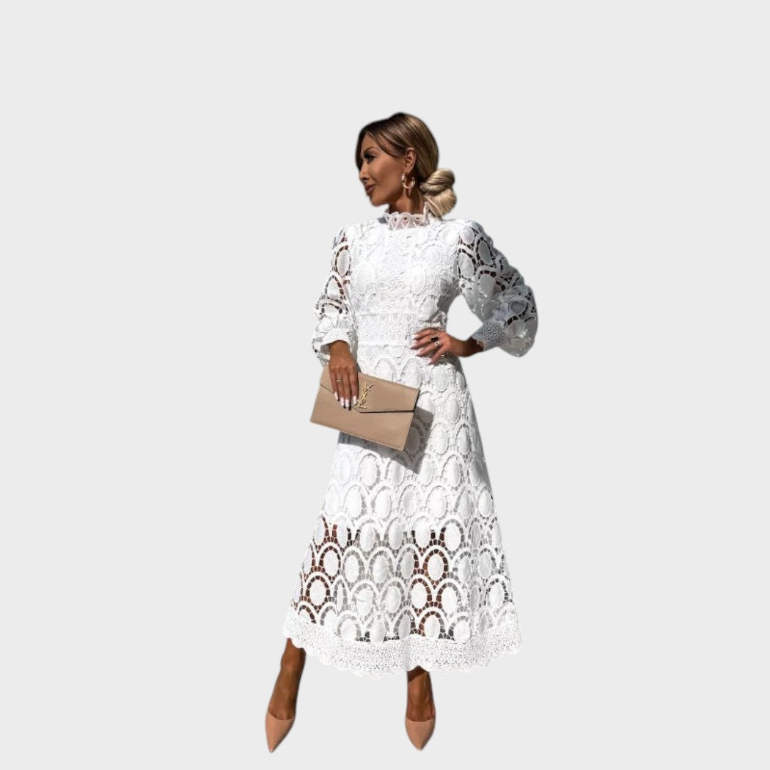 Danica - Čipkasta haljina s puf rukavima i visokim ovratnikom