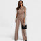 Skulpturalna elegancija s modernim dodirom: Set Sofija kombinira asimetričnu bluzu s širokim hlačama za siluetu koja je elegantna i teče s gracijom. Idealno za posebne prilike ili da unaprijedite svoj svakodnevni izgled bez napora.