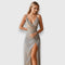Ova impresivna haljina nudi prozračan osjećaj i elegantan izgled. S tankim naramenicama, nabranim dizajnom na bustu i upečatljivim raskorakom, idealan je izbor za svečane prilike i posebne nastupe kada želiš da se istakneš.